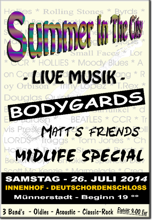 19.07.2014 Privatveranstaltung Herschfeld - Sportheim26.07.2014 "Summer in the City" - Openair im Schlosshof in Münnerstadt - zusammen mit den "Bodygards" und "Matt's Friends"